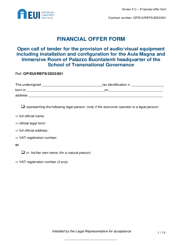 Get the free Annex II CFinancial offer form