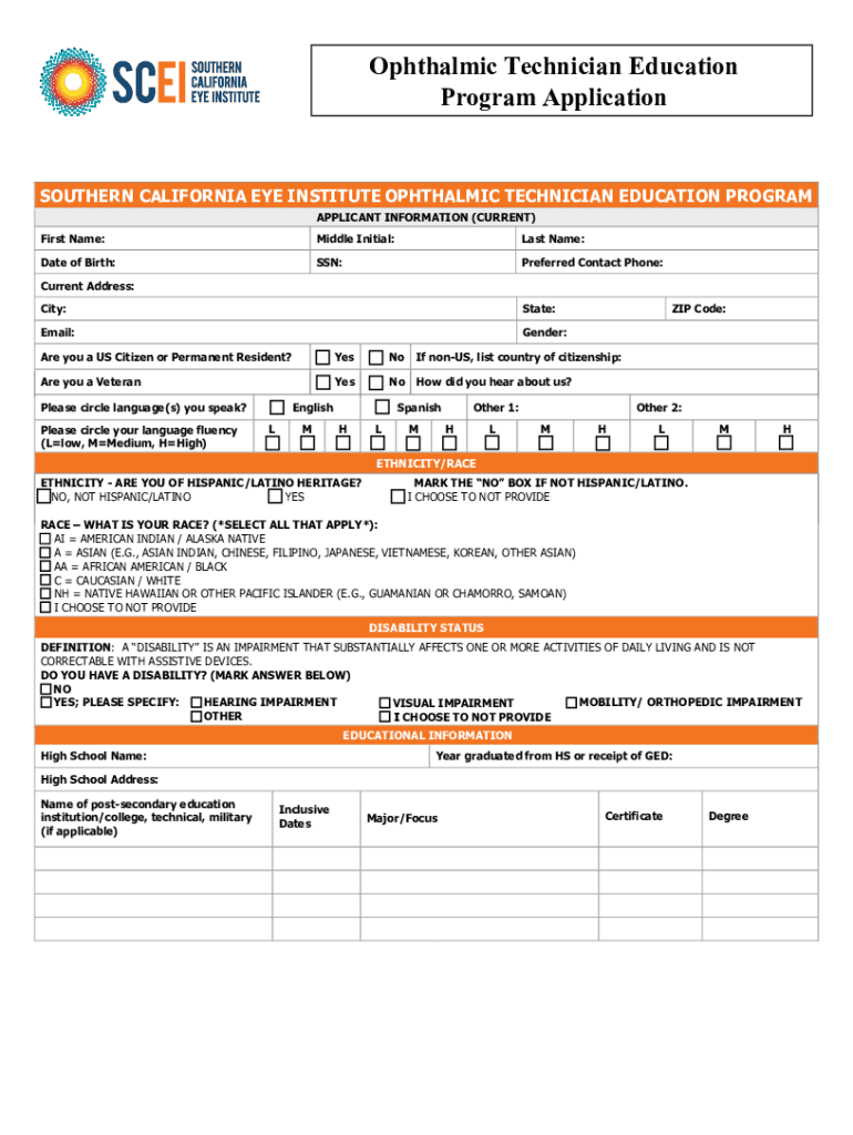 Ophthalmic Technician Education Program Application The Ophthalmic Technician Education Program (STEP) provides students interested in an allied health career in ophthalmology, the opportunity to