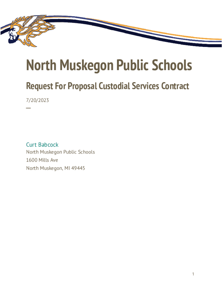 North Muskegon Public Schools Request For Proposal Custodial Services Contract 7/20/2023Curt Babcock North Muskegon Public Schools 1600 Mills Ave North Muskegon, MI 494451General Information The North