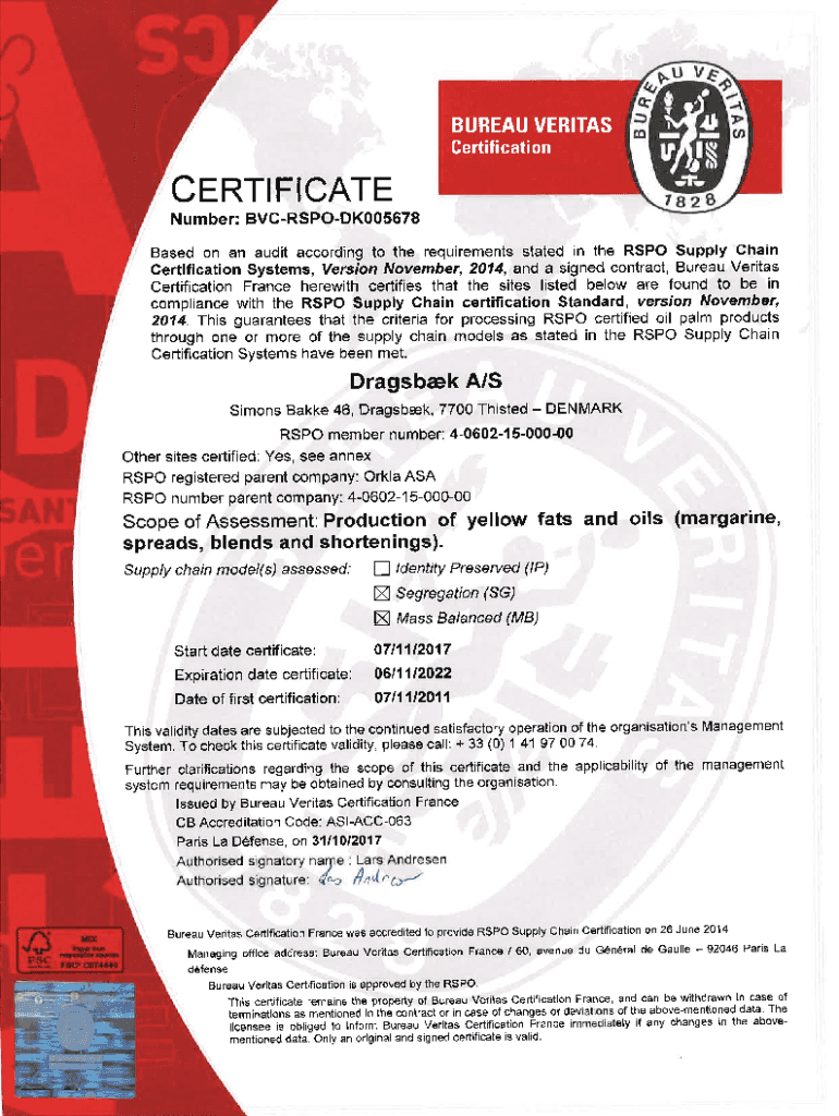 The purpose of RSPO supply chain certification is to promote the use of sustainable palm oil and support the production of palm oil in an environmentally and socially responsible manner.