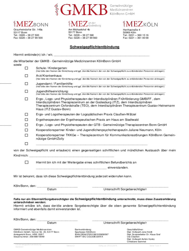 Holen Sie sich kostenlos 3.15 FB Schweigepflichtentbindung Standard, Vers. 2