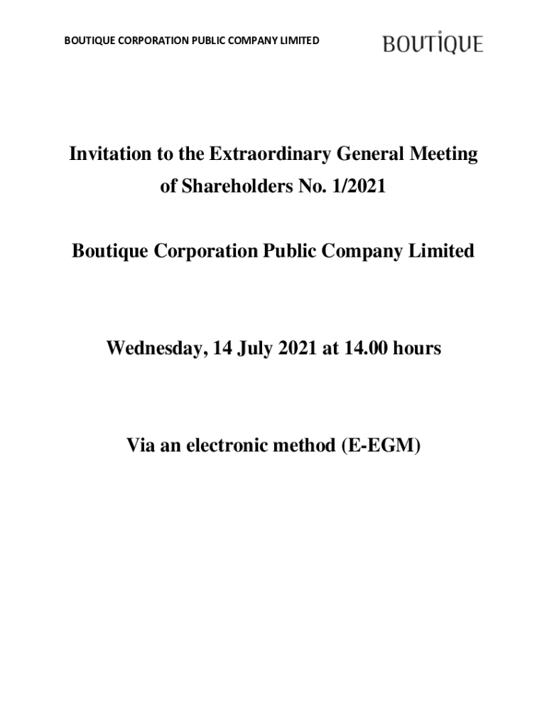 BOUTIQUE CORPORATION PUBLIC COMPANY LIMITEDInvitation to the Extraordinary General Meeting