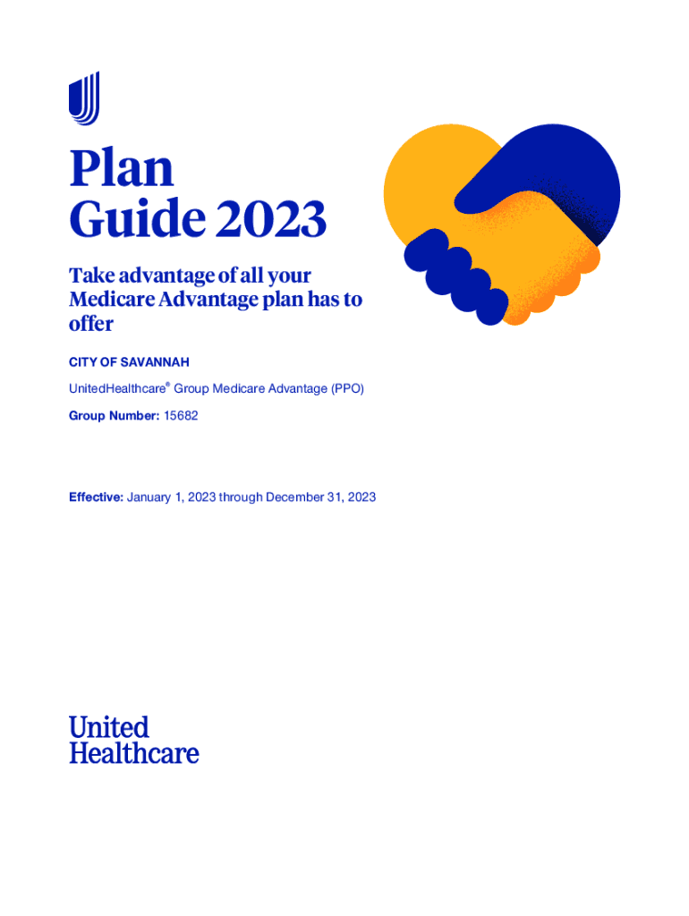 Plan Guide 2023 Take advantage of all your Medicare Advantage plan has to offer CITY OF SAVANNAH UnitedHealthcare Group Medicare Advantage (PPO) Group Number: 15682Effective: January 1, 2023, through
