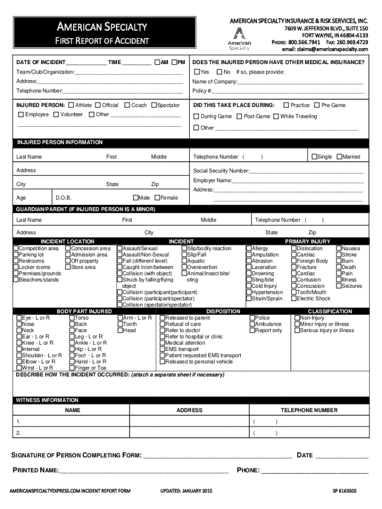 Get the free First Report of Accident.