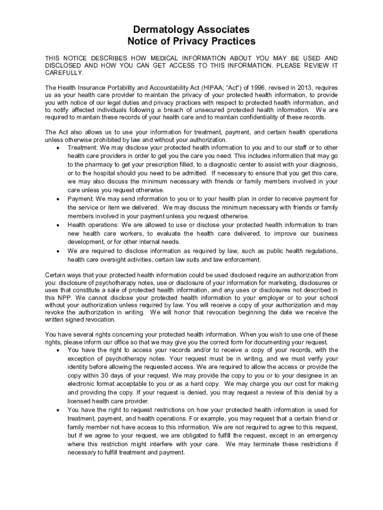 Get the free Notice of Privacy Policies and Practice for Dermatology ...