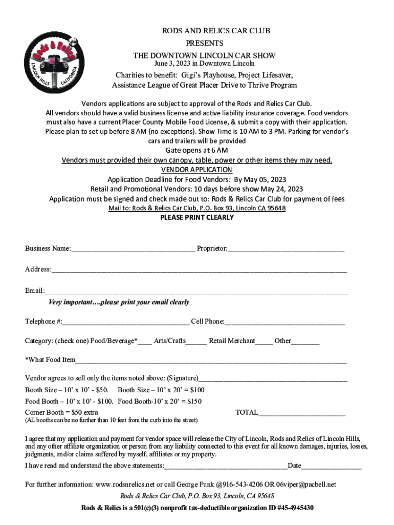 RODS AND RELICS CAR CLUB PRESENTS THE DOWNTOWN LINCOLN CAR SHOW June 3, 2023, in Downtown LincolnCharities to benefit: Gigs Playhouse, Project Lifesaver, Assistance League of Great Placer Drive to