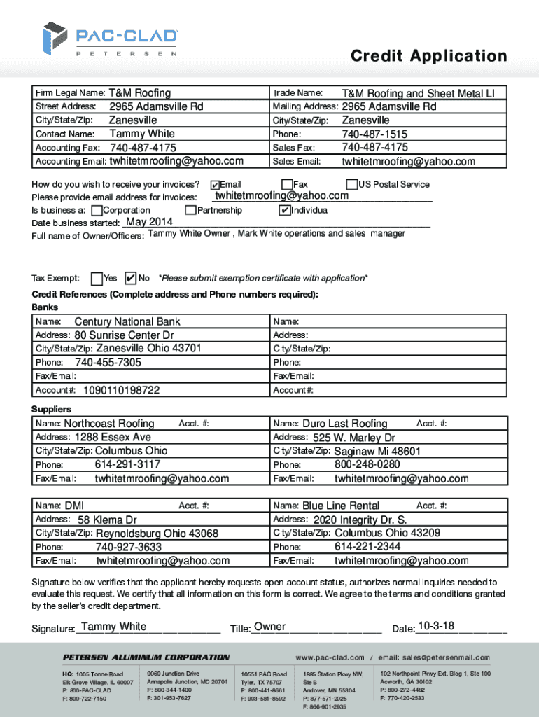 Accounting Email:twhitetmroofing@yahoo. Comte Roofing and