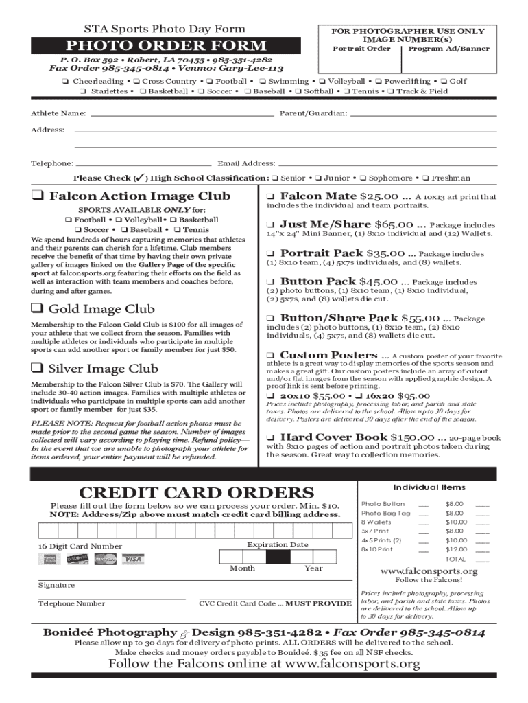IMAGE NUMBER(s)PHOTO ORDER FORMPortrait Reprogram Ad/Banner. O. Box 592 Robert, LA 70455 9853514282Fax Order 9853450814 Venmo: GaryLee113