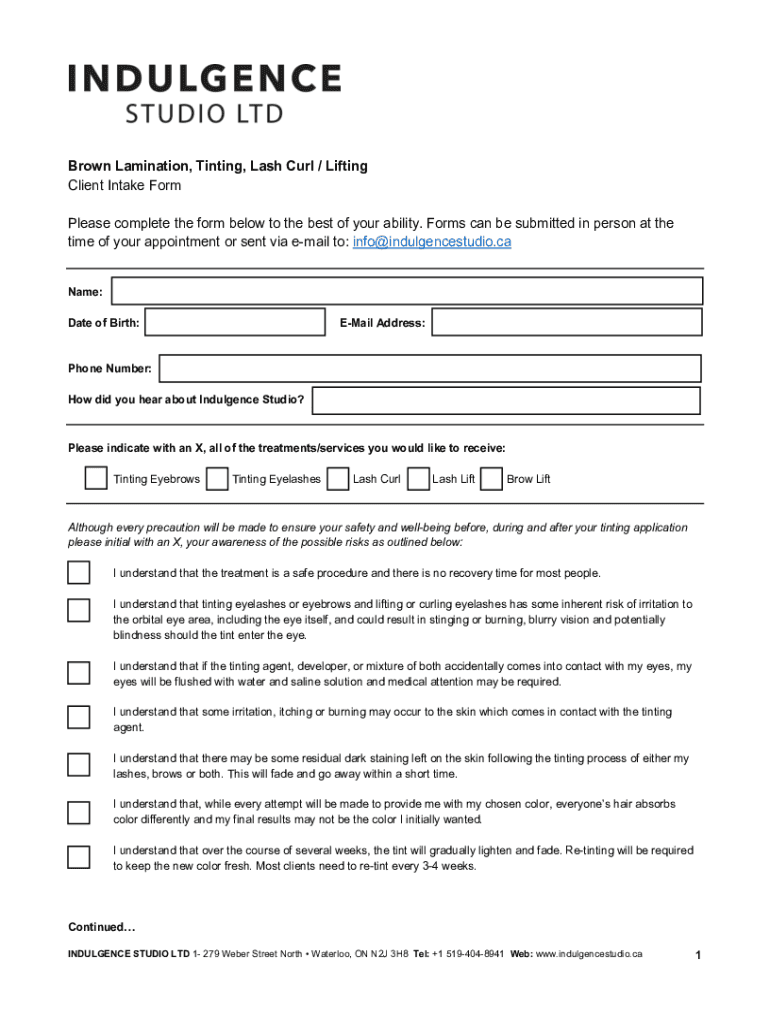 Get the free Brown Lamination, Tinting, Lash Curl / Lifting Client Intake Form