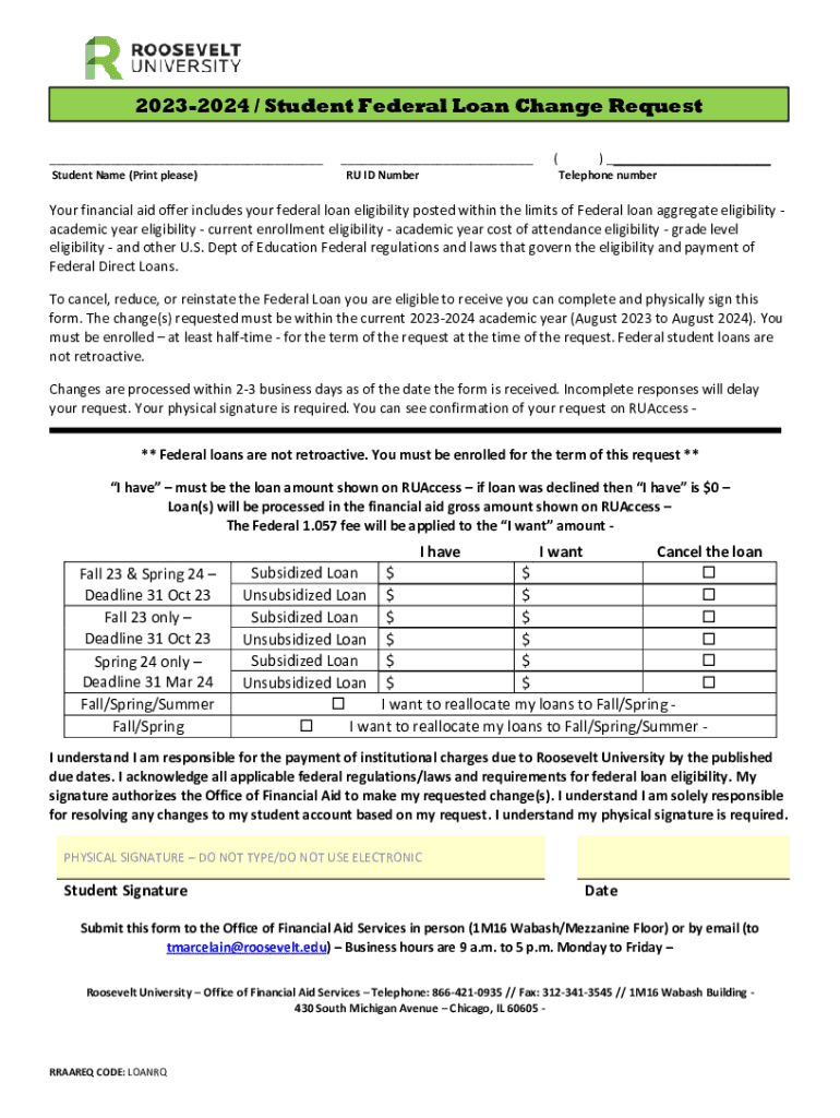 20232024 / Student Federal Loan Change Request ___ Student Name (Print please)___ RU ID Number() ___ Telephone numerous financial aid offer includes your federal loan eligibility posted within the