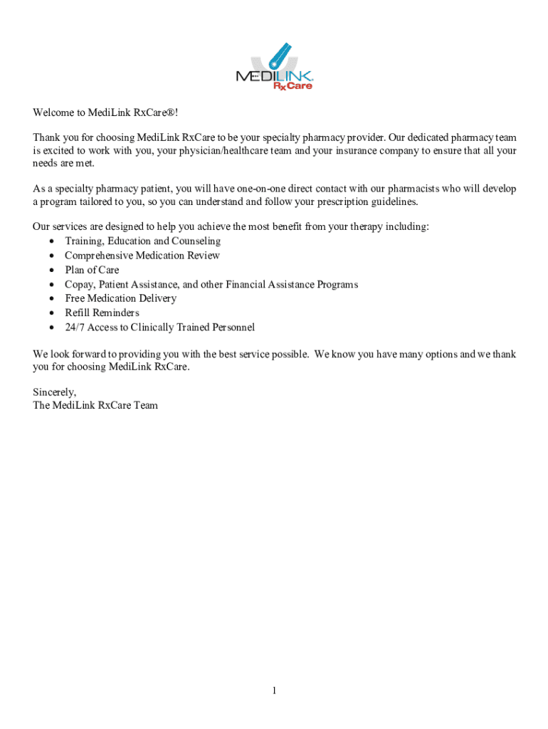Welcome to Medicine Racier! Thank you for choosing Medicine Racier to be your specialty pharmacy provider. Our dedicated pharmacy team is excited to work with you, your physician/healthcare team and