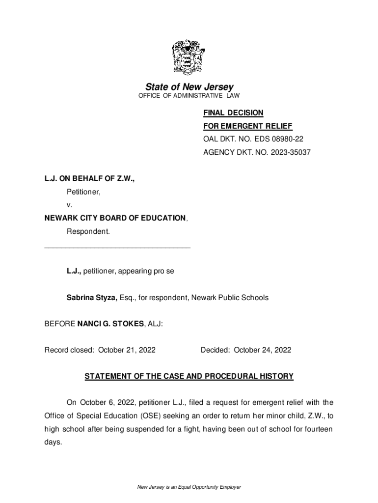 Get the free New Jersey Commissioner of Education Order on ...