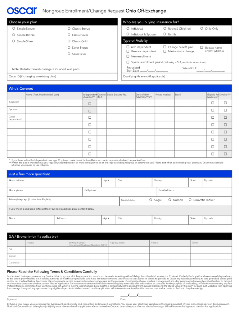How to fill out nongroup enrollmentchange request ohio