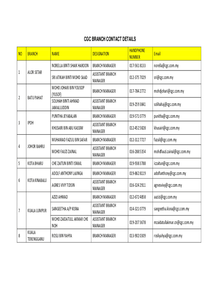 CGC BRANCH CONTACT DETAILS