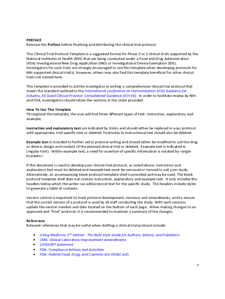 PREFACE Remove this Preface before finalizing and distributing the clinical trial protocol. This Clinical Trial Protocol Template is a suggested format for Phase 2 or 3 clinical trials supported by