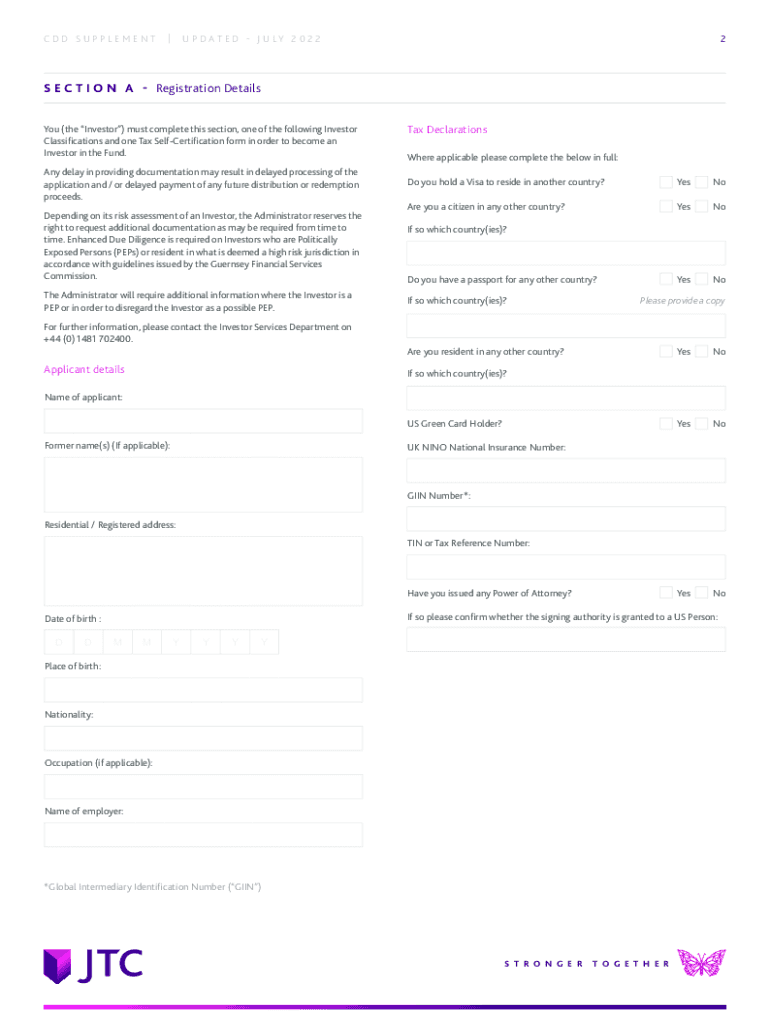 CDD SUPPLEMENT|U P D AT E D J U LY 2 0 2 21CDD SUPPLEMENT U P D AT E D J U LY 2 0 2 2CONTENTS SECTIONPAGEINVE ST OR C L A S IFI CAT I O N S1SE C TO NA Registration Details2SE C TO NB Individual(s)3SE