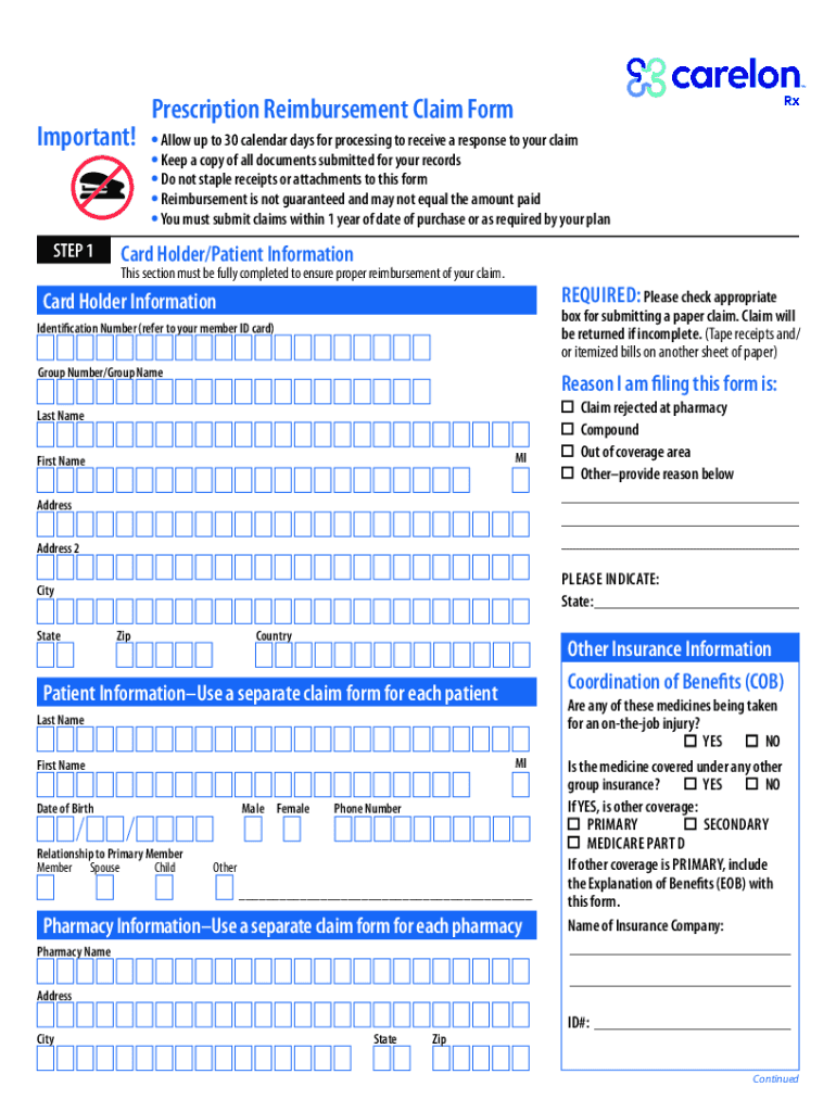 Prescription Reimbursement Claim Form Important!STEP 1 Allow up to 30 calendar days for processing to receive a response to your claim Keep a copy of all documents submitted for your records Do not