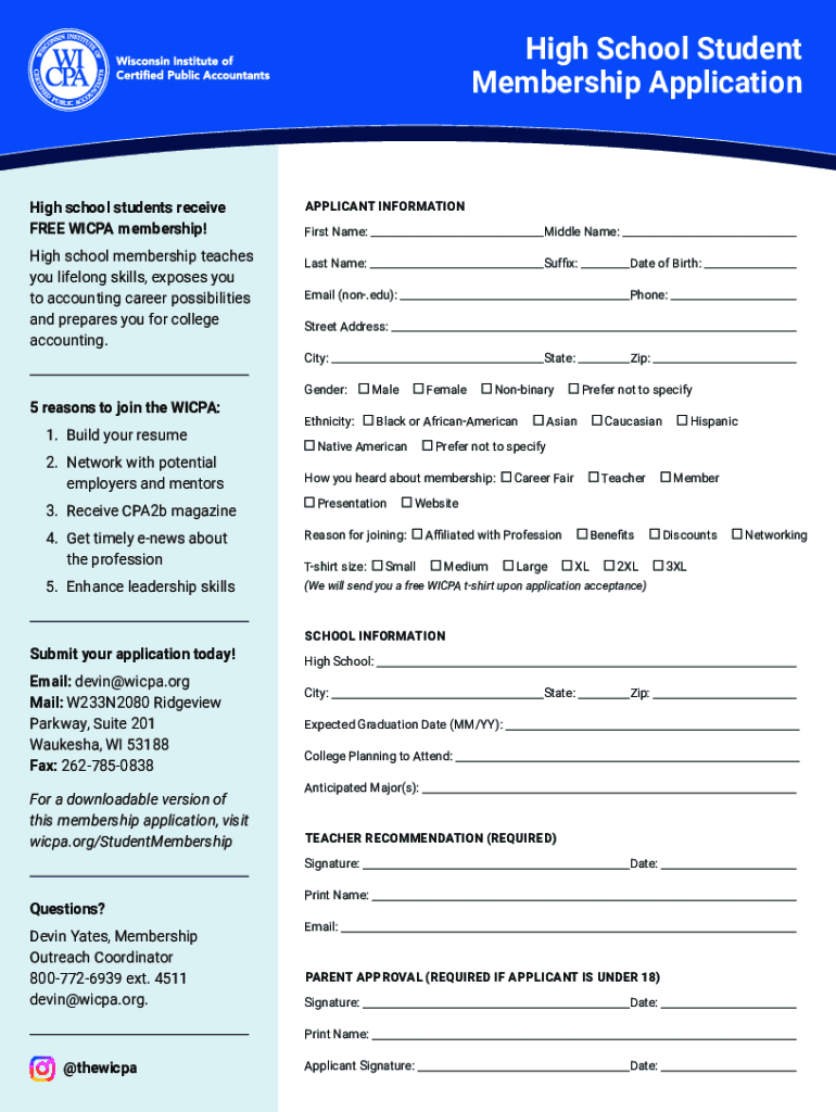 High School Student Membership ApplicationHigh school students receive FREE WICCA membership! High school membership teaches you lifelong skills, exposes you to accounting career possibilities and