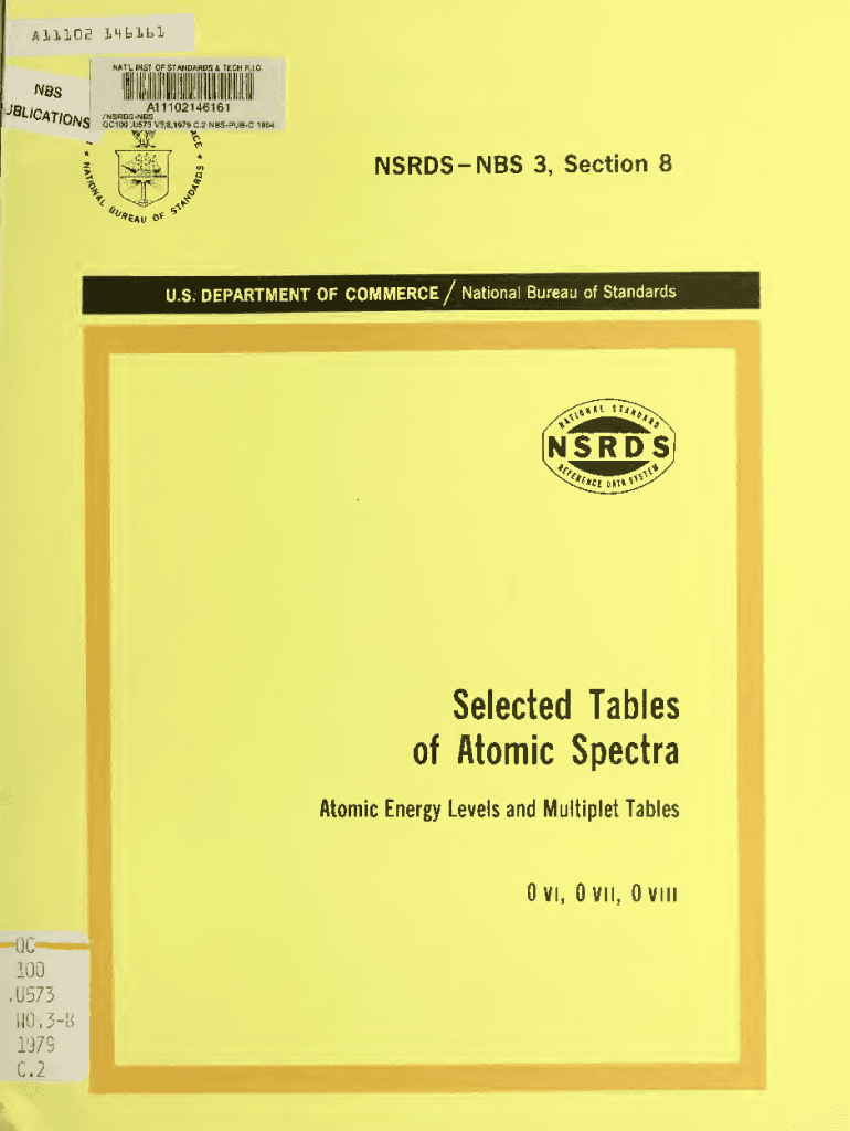 QC100. U573 V3;8;1979C.2NBSPUBC 1964NSRDSNBSU. S.DEPARTMENT OF COMMERCE /3,Section 8National Bureau of StandardslSf4,NERDS