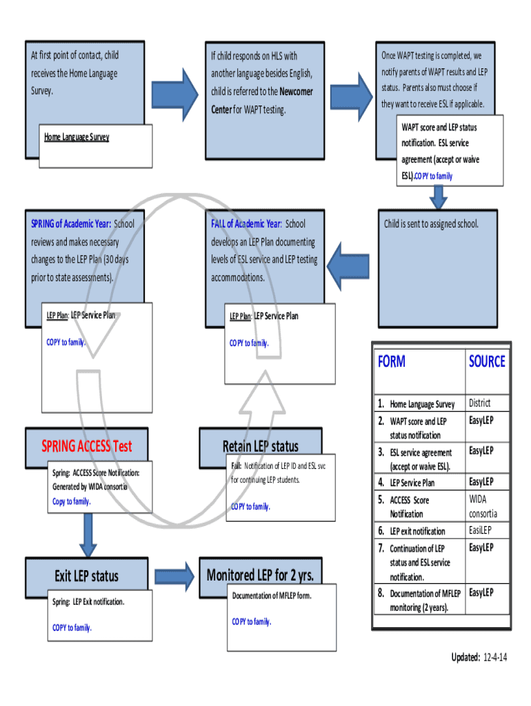 At first point of contact, child receives the Home Language Survey. If child responds on HLS with another language besides English, child is referred to the Newcomer Center for WAIT testing. Once