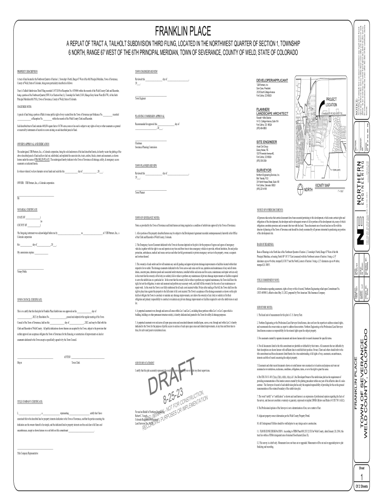A REPEAT OF TRACT A, TAILCOAT SUBDIVISION THIRD FILING, LOCATED IN THE NORTHWEST QUARTER OF SECTION 1, TOWNSHIP 6 NORTH, RANGE 67 WEST OF THE 6TH PRINCIPAL MERIDIAN, TOWN OF SEVERANCE, COUNTY OF WELD,