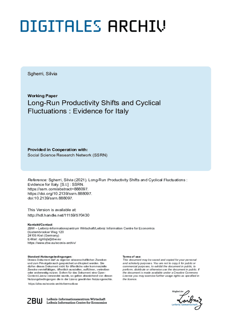 Sherri, SilviaWorking PaperLongRun Productivity Shifts and Cyclical