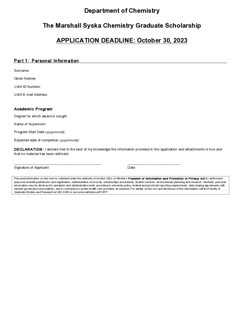 Get the free The Marshall Syska Chemistry Graduate Scholarship ...