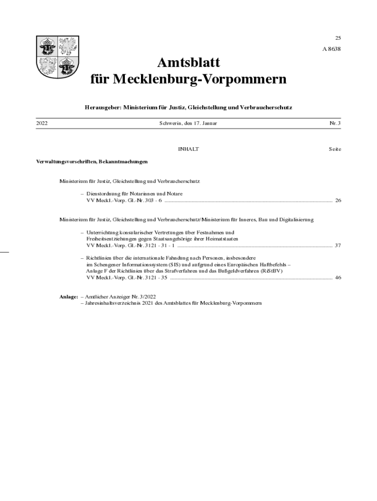for Mecklenburg-Vorpommern 8638Herausgeber: Ministerial for Justin, Gleichstellung UND Verbraucherschutz