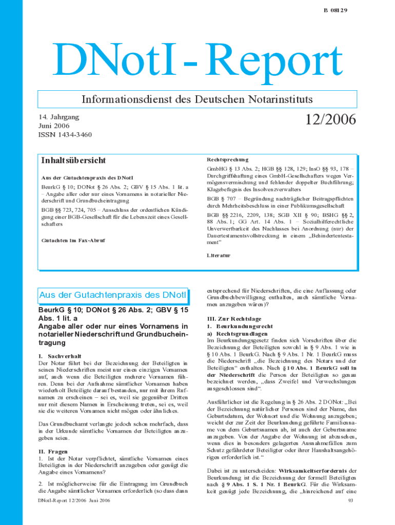 Informationsdienst DES Deutsche Notarinstituts12/200614. Charging