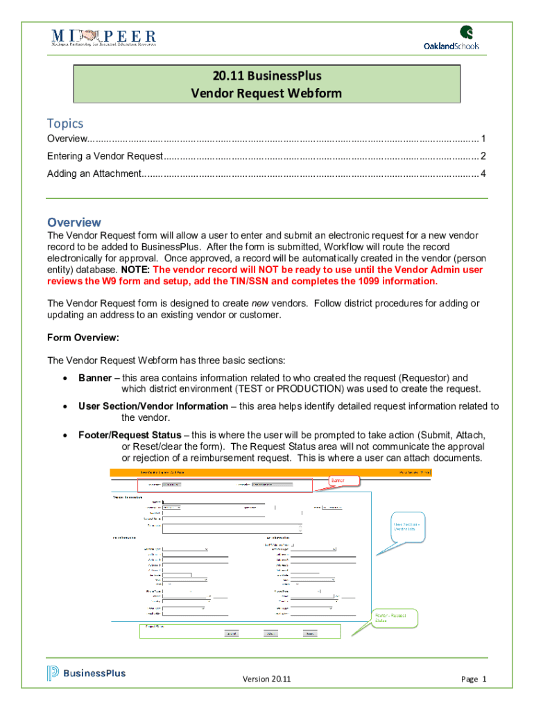 20.11 Businesses Vendor Request Web form TopicsOverview................................................................................................................................................