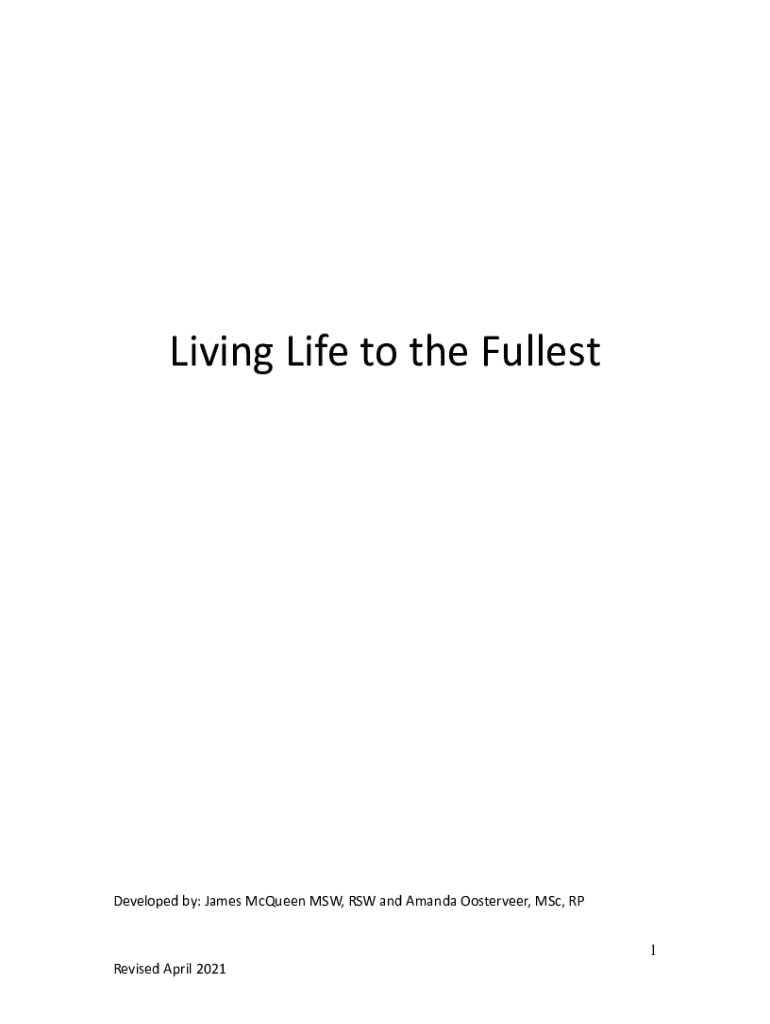 Living Life to the FullestDeveloped by: James McQueen MSW, RSW and Amanda Observer, M.Sc., RP 1 Revised April 2021Table of Contents Session 1: Introduction1Session 2: Values12Session 3: Present Moment23Session