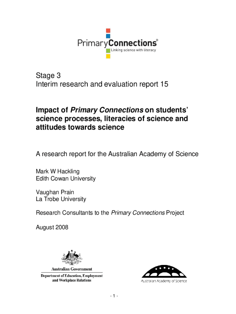 Stage 3 Interim research and evaluation report 15Impact of Primary Connections on students' science processes, literates of science and attitudes towards science research report for the Australian