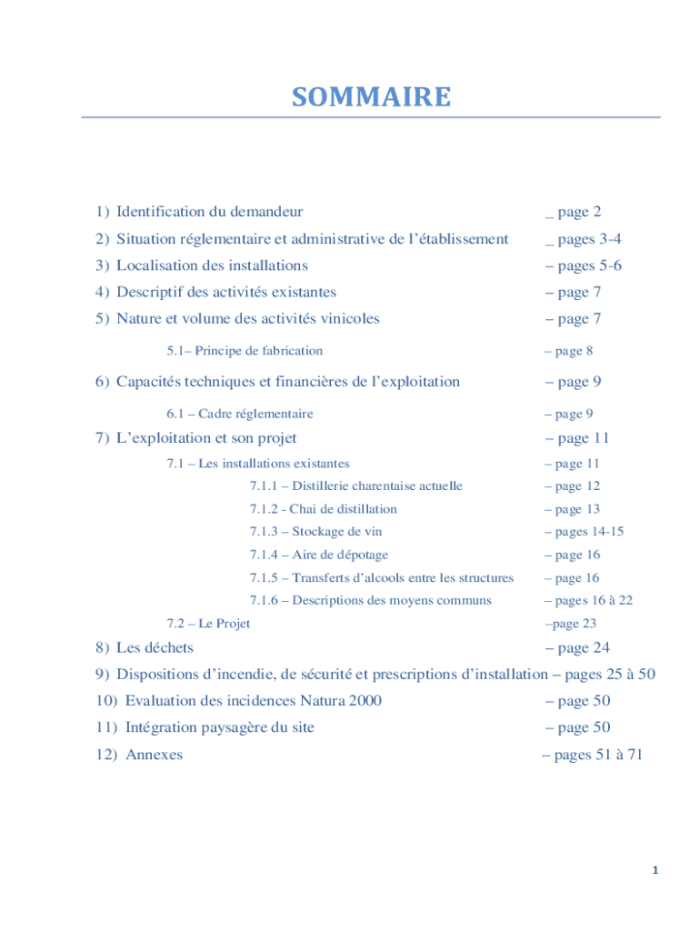 SOMMAIRE1) Identification Du demander_ page 22) Situation rglementaire et administrative de ltablissement_ pages 343) Localization DES installations pages 564) Description DES activity exist antes