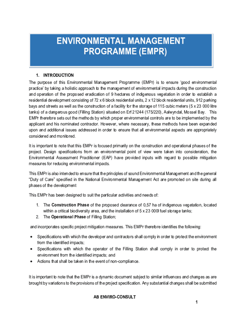 Get the free ENVIRONMENTAL MANAGEMENT P GRAMME (EMPR) ...