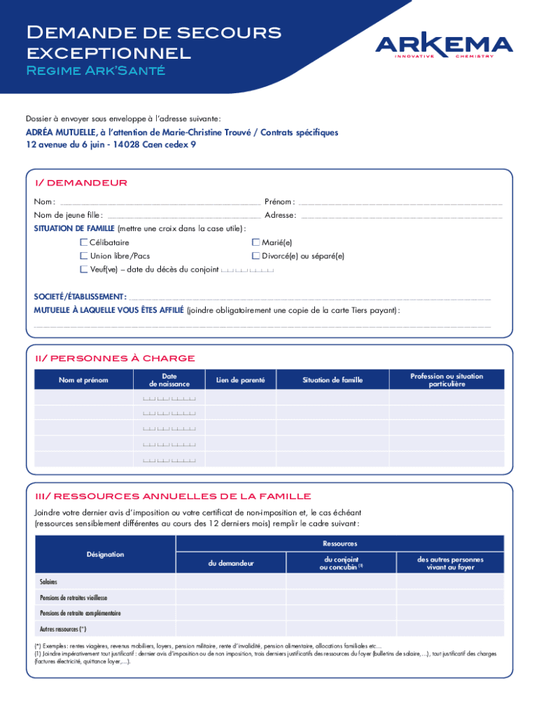Tout d'abord, téléchargez le formulaire de demande de secours exceptionnel sur le site officiel du service compétent.