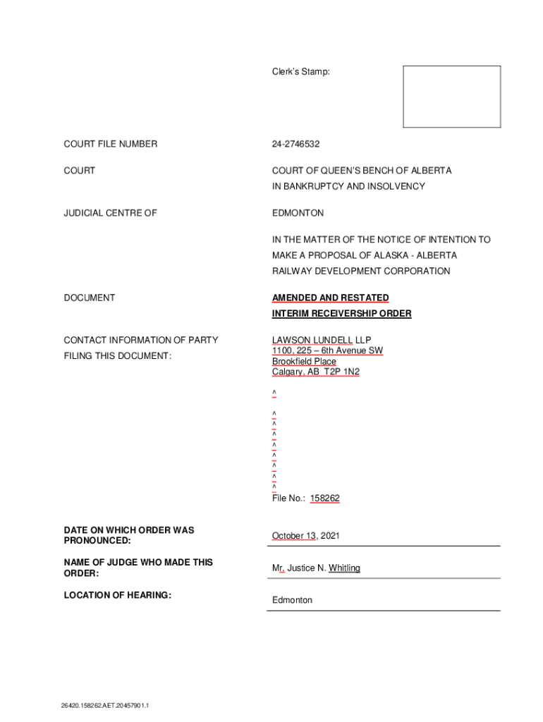 Clerks Stamp:COURT FILE NUMBER242746532COURTCOURT OF QUEEN'S BENCH OF ALBERTA
