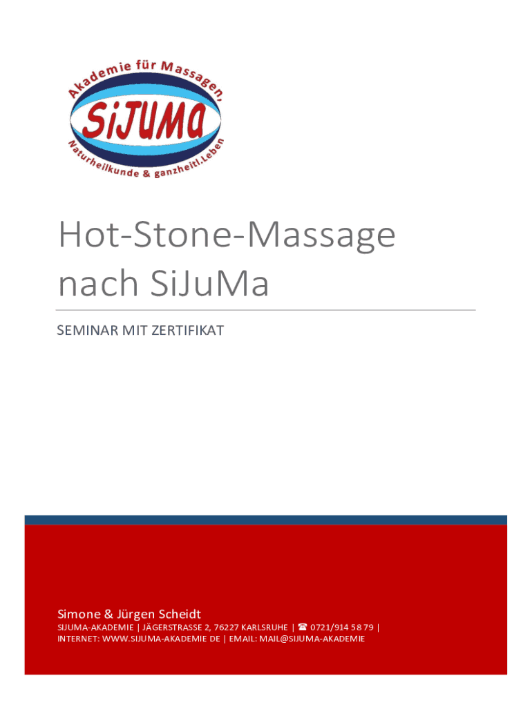 HotStoneMassage each Sigma SEMINAR MIT ZERTIFIKATSimone & Jr gen Schmidt SIJUMAAKADEMIE | JGERSTRASSE 2, 76227 KARLSRUHE | 0721/914 58 79 | INTERNET: WWW.SIJUMAAKADEMIE DE | EMAIL: MAIL@SIJUMAAKADEMIEWOCHENENDSEMINAR
