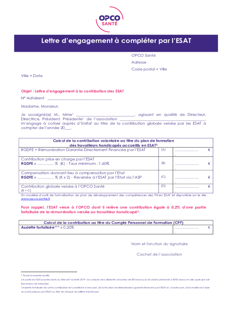 Obtenir le gratuit Lettre d'engagementcomplter par l'ESAT
