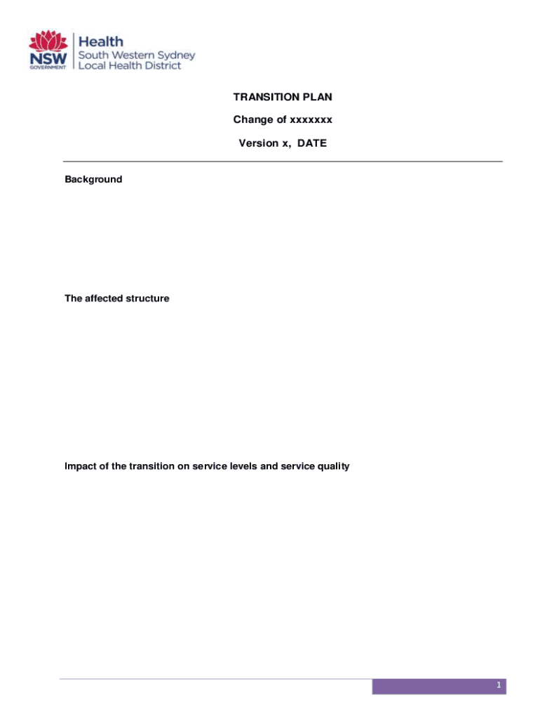 TRANSITION PLAN Change of xxxix Version x, DATEBackgroundThe affected structureImpact of the transition on service levels and service quality1Maintaining functions within the office/service The following
