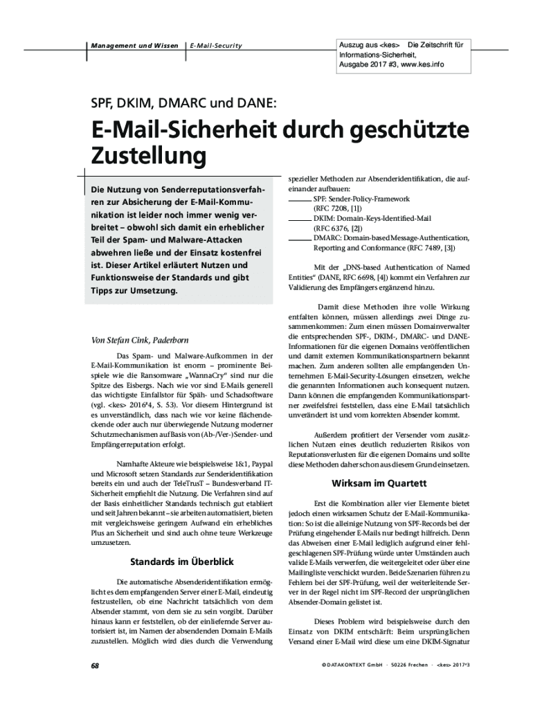 Mugabe 2017 #3, www.kes.infoSPF, DKIM, DMARC UND DANE:EMailSicherheit Dutch gestate