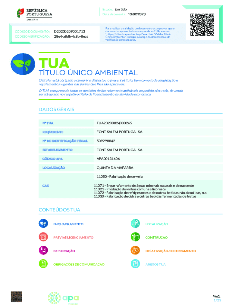 Est ado: Emilio Data de consult: 13/02/2023CDIGO DOCUMENT: CDI GO VERTICAL:Para realizer a valid do document e composer Que o document presented correspond AO TUA, aced a \”https://siliamb.apambiente.pt\”