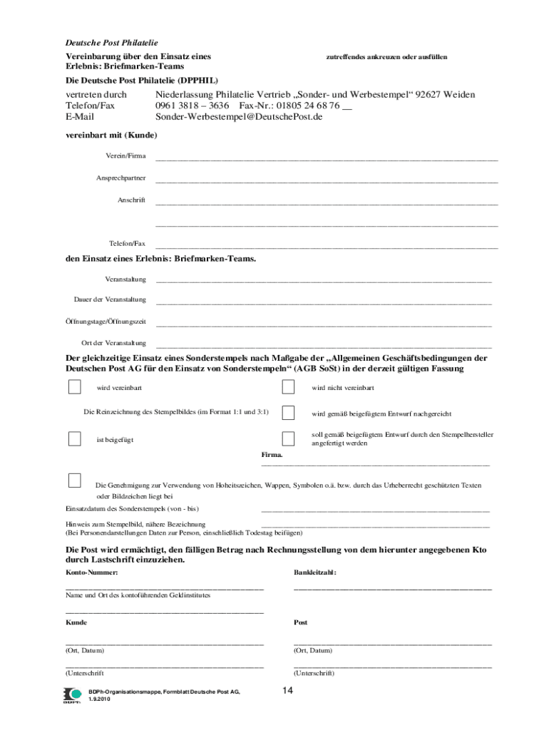 Deutsche Post Philatelic Vereinbarung BER den Ersatz lines Orleans: BriefmarkenTeamszutreffendes ankreuzen Oder ausfllenDie Deutsche Post Philatelic (PHIL)evergreen Dutch Telephone/Fax EMailNiederlassung