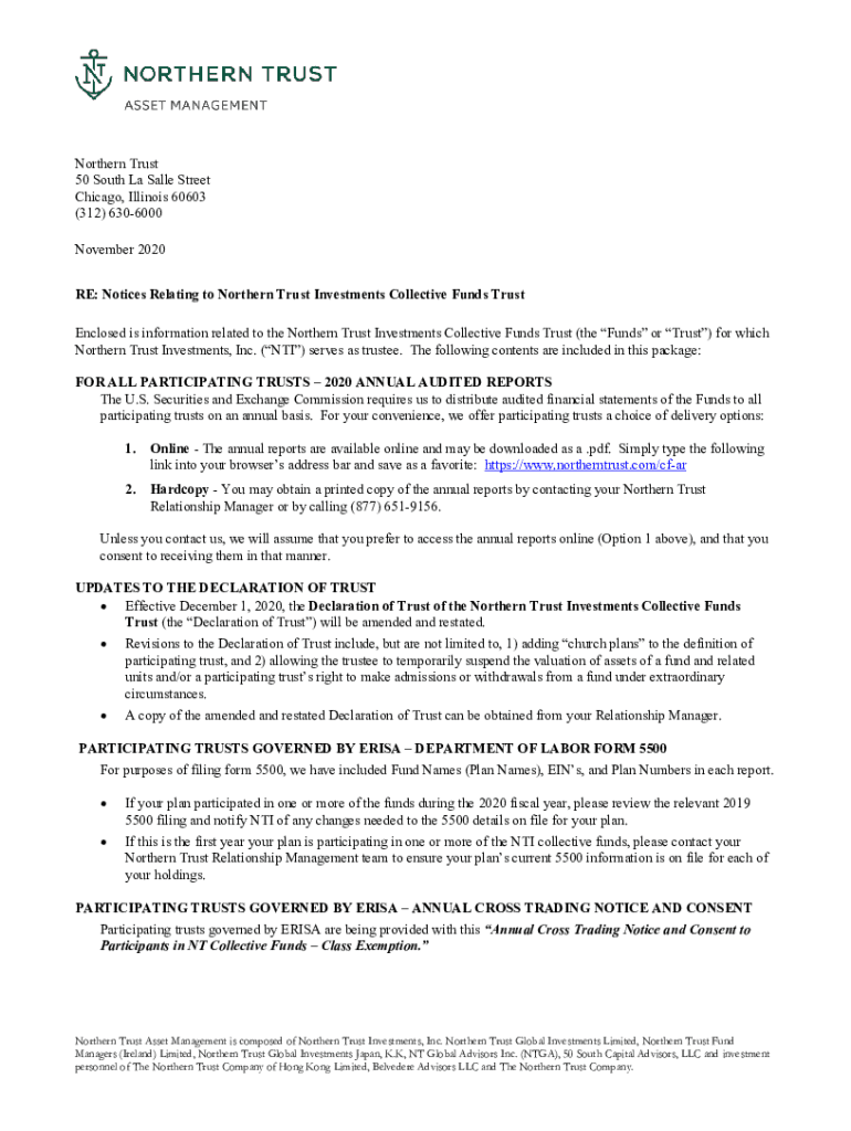 Northern Trust 50 South La Sale Street Chicago, Illinois 60603 (312) 6306000 November 2020 RE: Notices Relating to Northern Trust Investments Collective Funds Trust Enclosed is information related