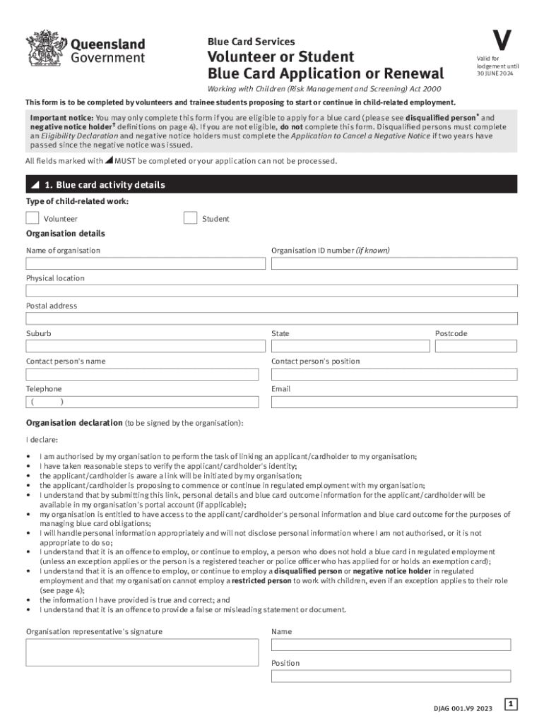 Get the free Link a person to your organisation - Blue Card Services No ...