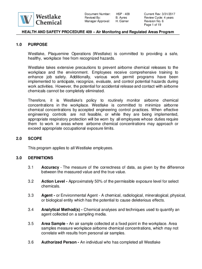 Get the free HEALTH AND SAFETY PROCEDURE 409 Air Monitoring and ...