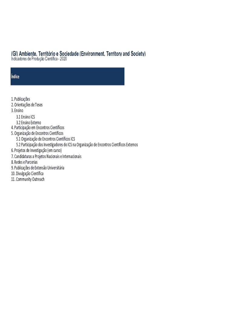 (GI) Ambient, Terri trio e Societal (Environment, Territory and Society)Indicators de Produo Scientific 2020ndice1. Publicans