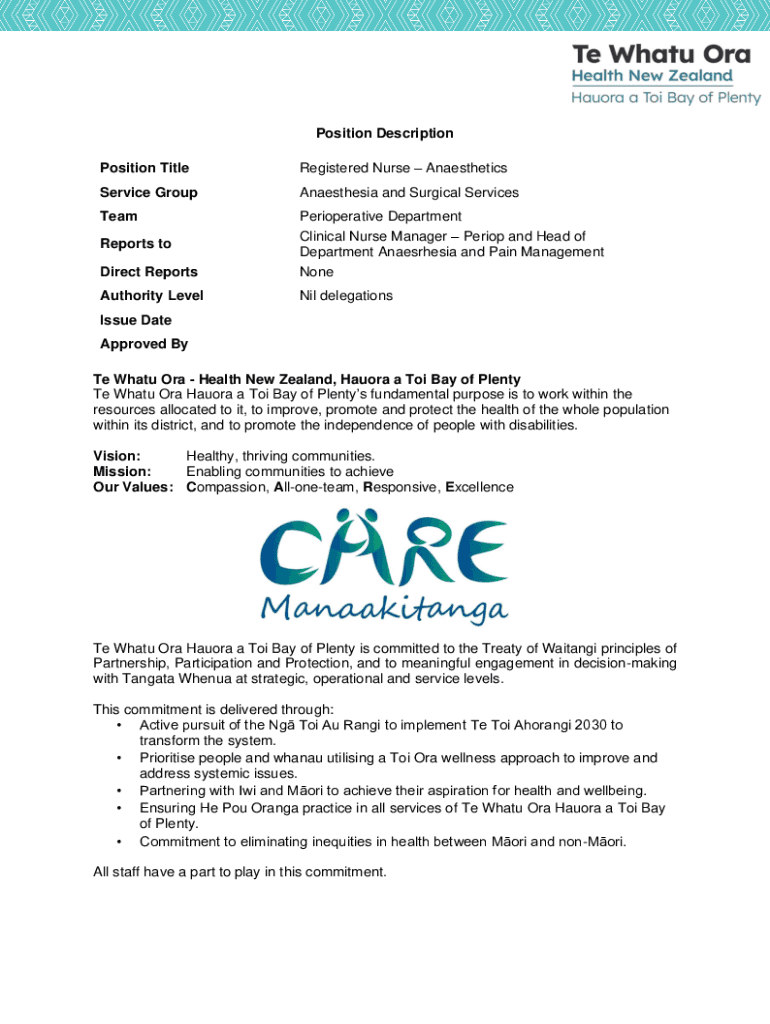 Position Description Position TitleRegistered Nurse AnaestheticsService GroupAnaesthesia and Surgical ServicesTeamDirect ReportsPerioperative Department Clinical Nurse Manager Period and Head of Department
