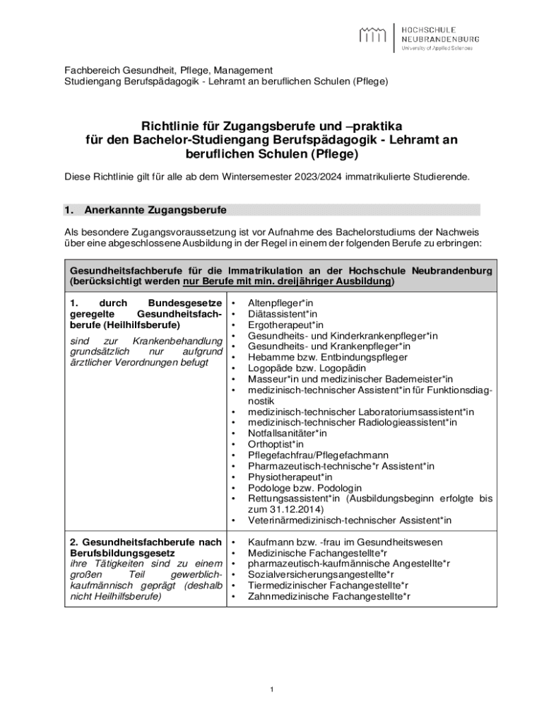 Studiengang Berufspdagogik Least a beruflichen Schultz (Flee)Richtlinie for Zugangsberufe UND practice