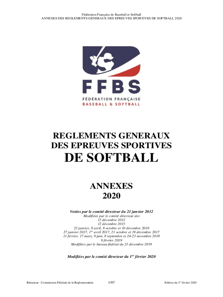 ANNEXES DES ELEMENTS GENERAL DES EXPRESSES SPORTIVE SDE SOFTBALL 2020REGLEMENTS GENERAL