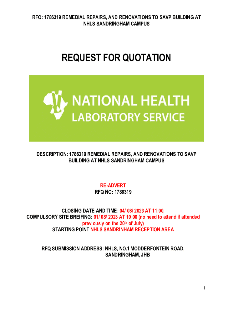 RFQ: 1786319 REMEDIAL REPAIRS, AND RENOVATIONS TO SAVE BUILDING AT NHS SANDRINGHAM CAMPUSREQUEST FOR QUOTATIONDESCRIPTION: 1786319 REMEDIAL REPAIRS, AND RENOVATIONS TO SAVE BUILDING AT NHS SANDRINGHAM
